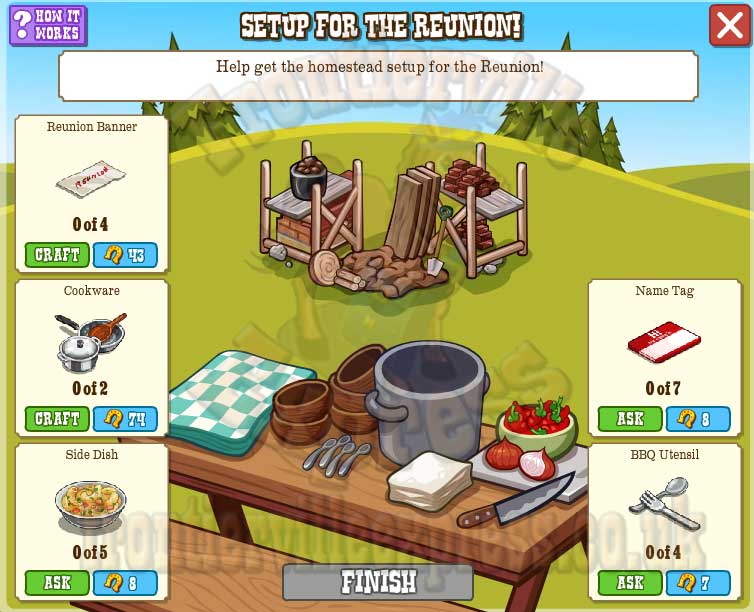 Totals needed: 90 Pots 'n' Pans, 50 Serving Spoons